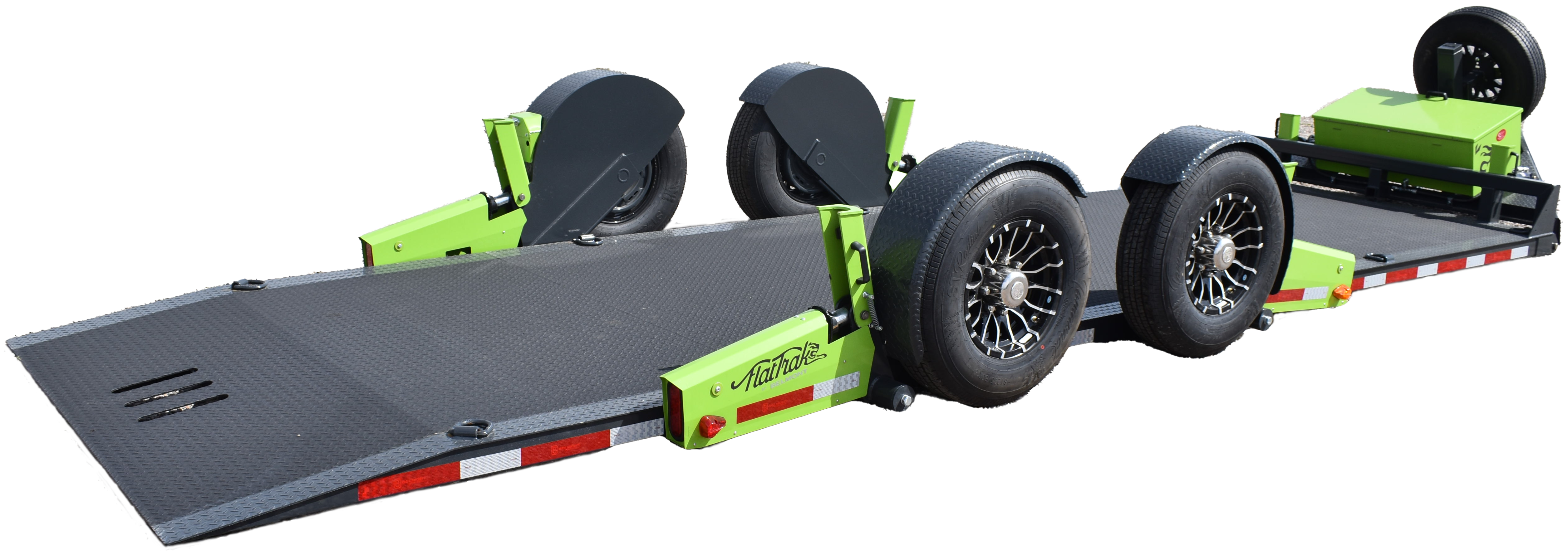 Belmont SS1018-14K Lo Profile equipment trailer, LT215/75R17.5 tires, spare tire, 5' standup spring assisted ladder ramps with support stands, LED lights